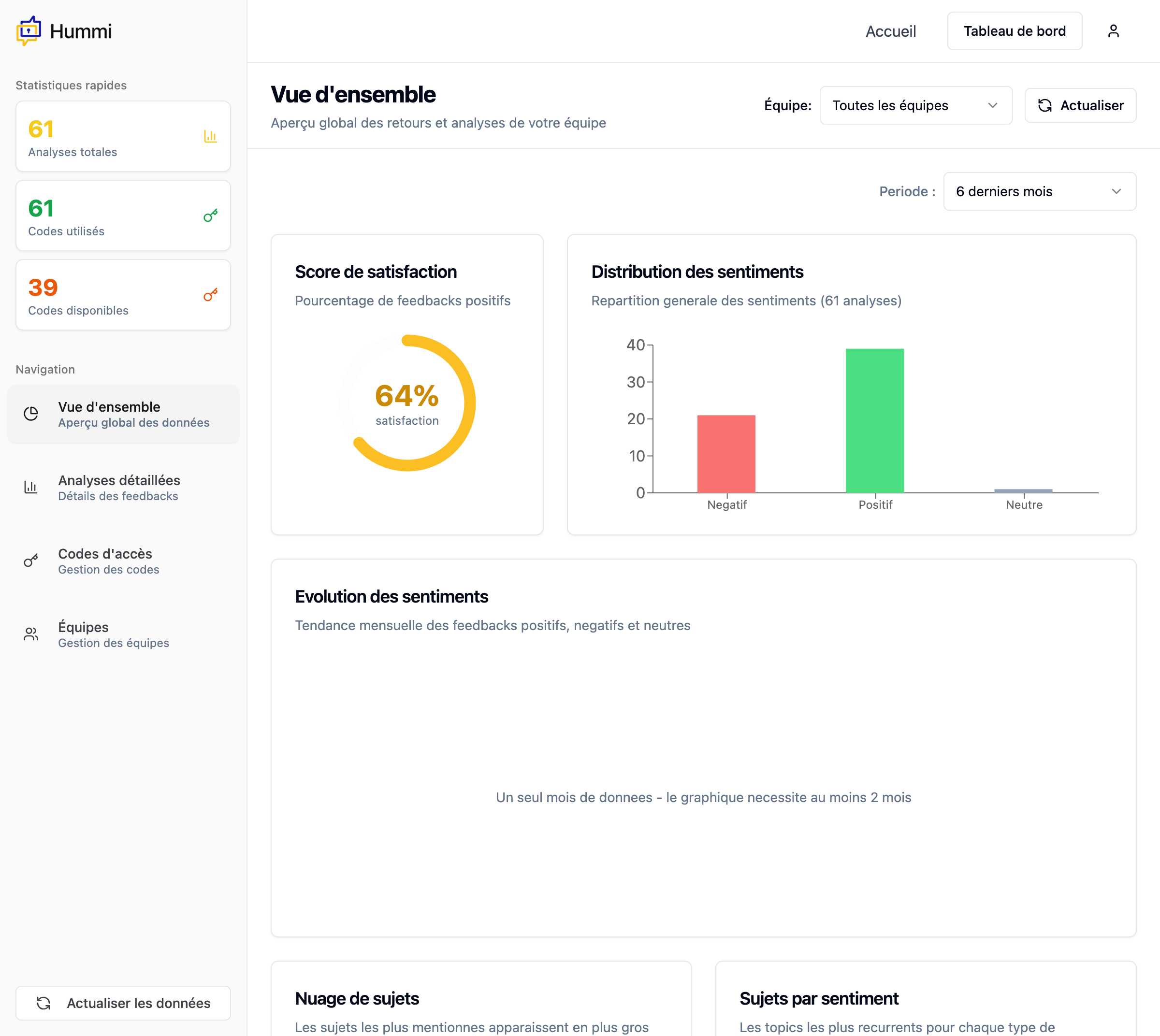 - Dashboard complet avec score de satisfaction