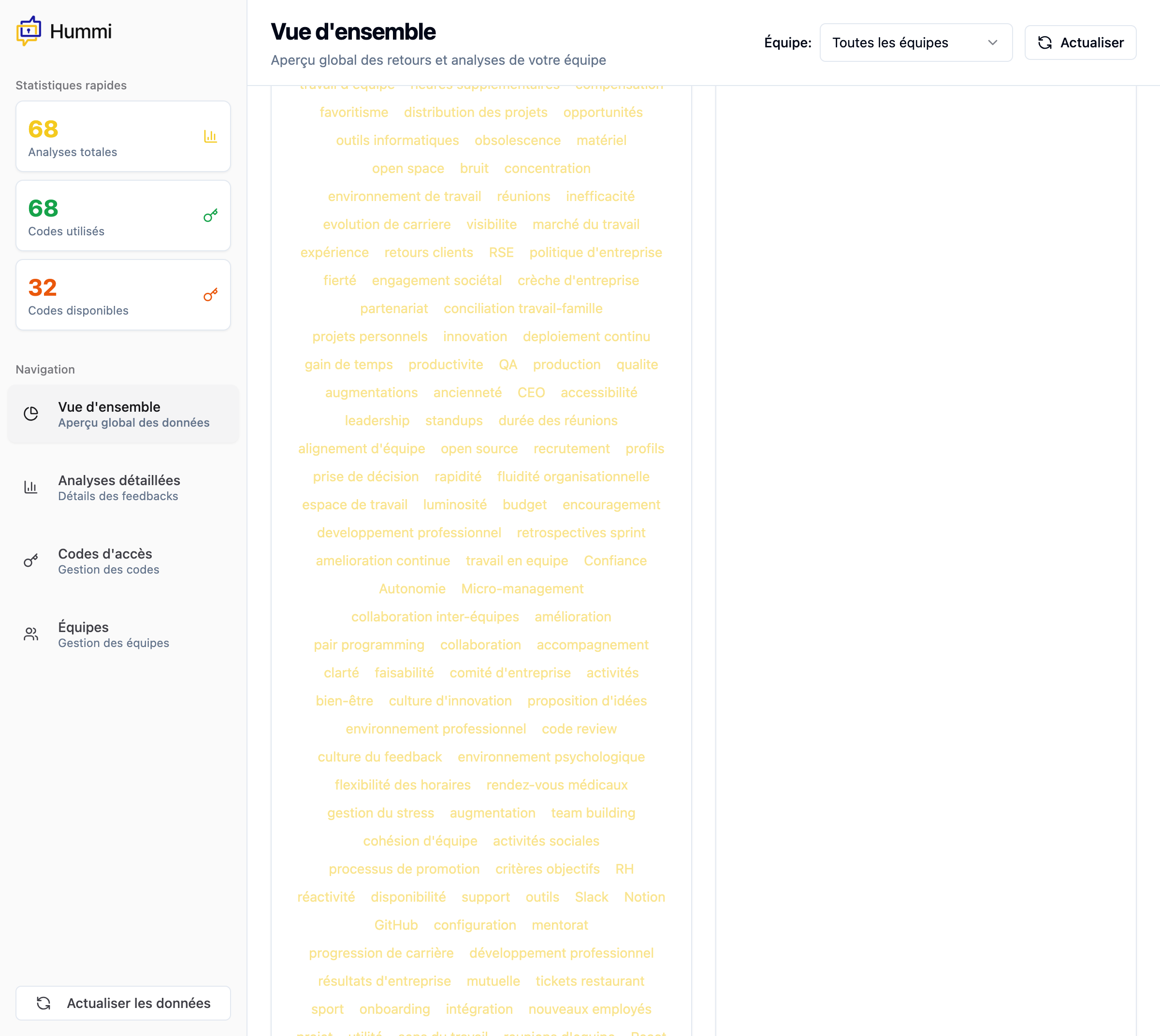 Identifiez les themes recurrents. Voyez ce qui preoccupe vraiment vos equipes.